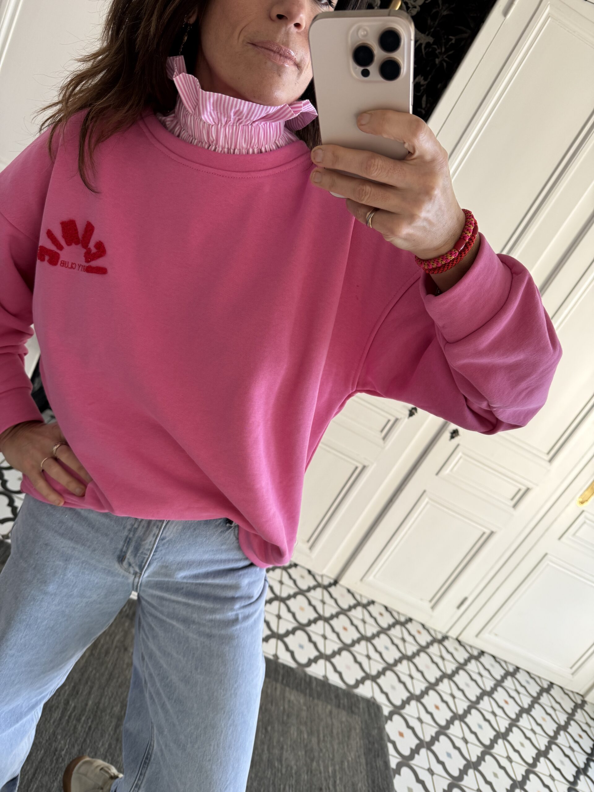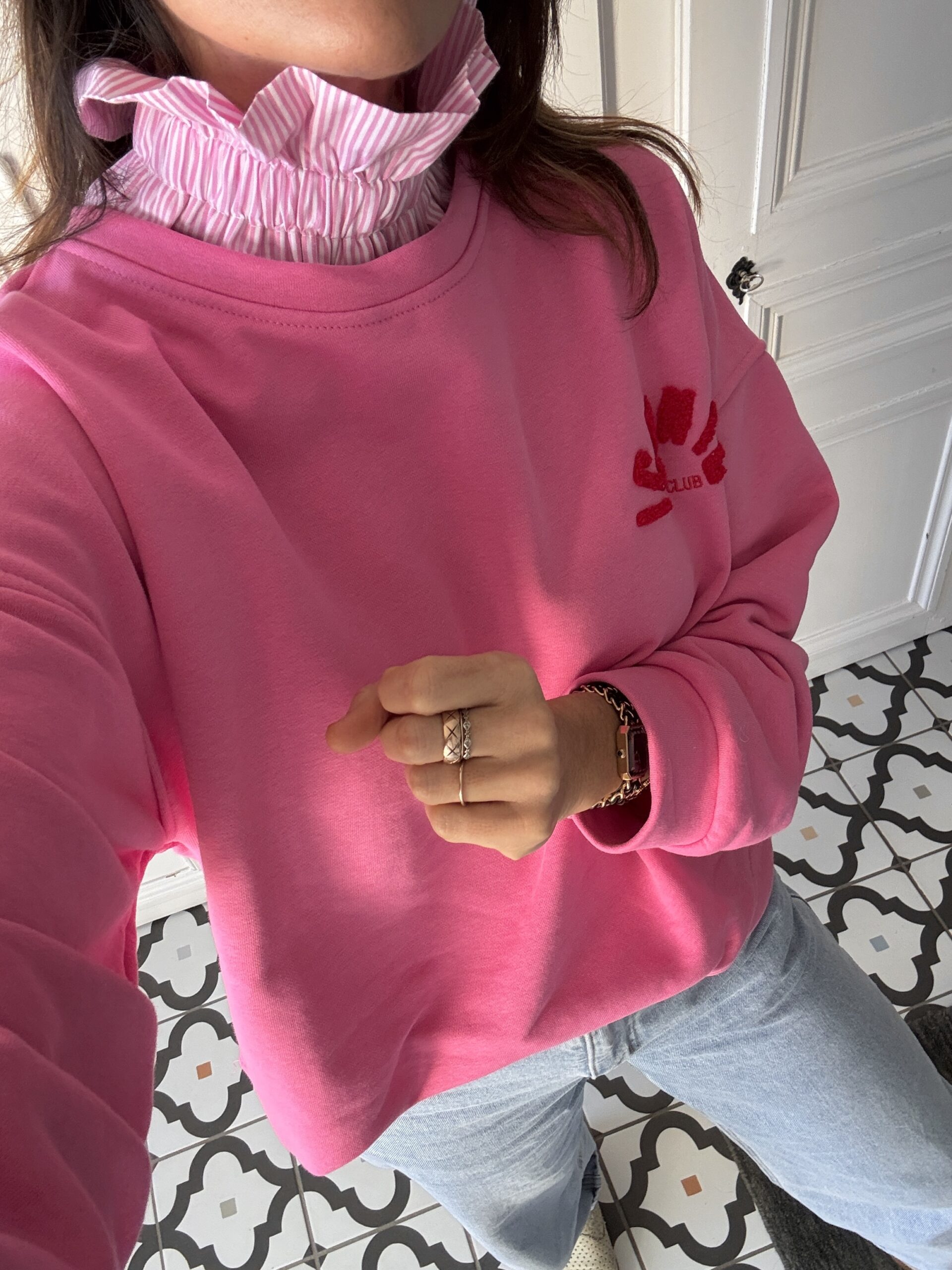 Col amovible frou frou rayé rose