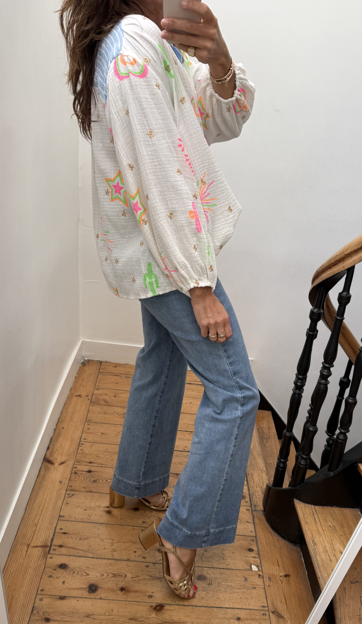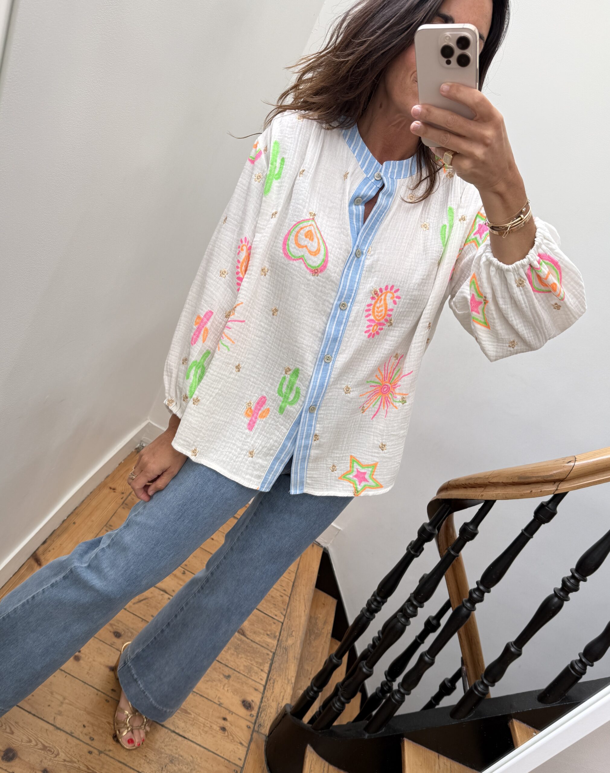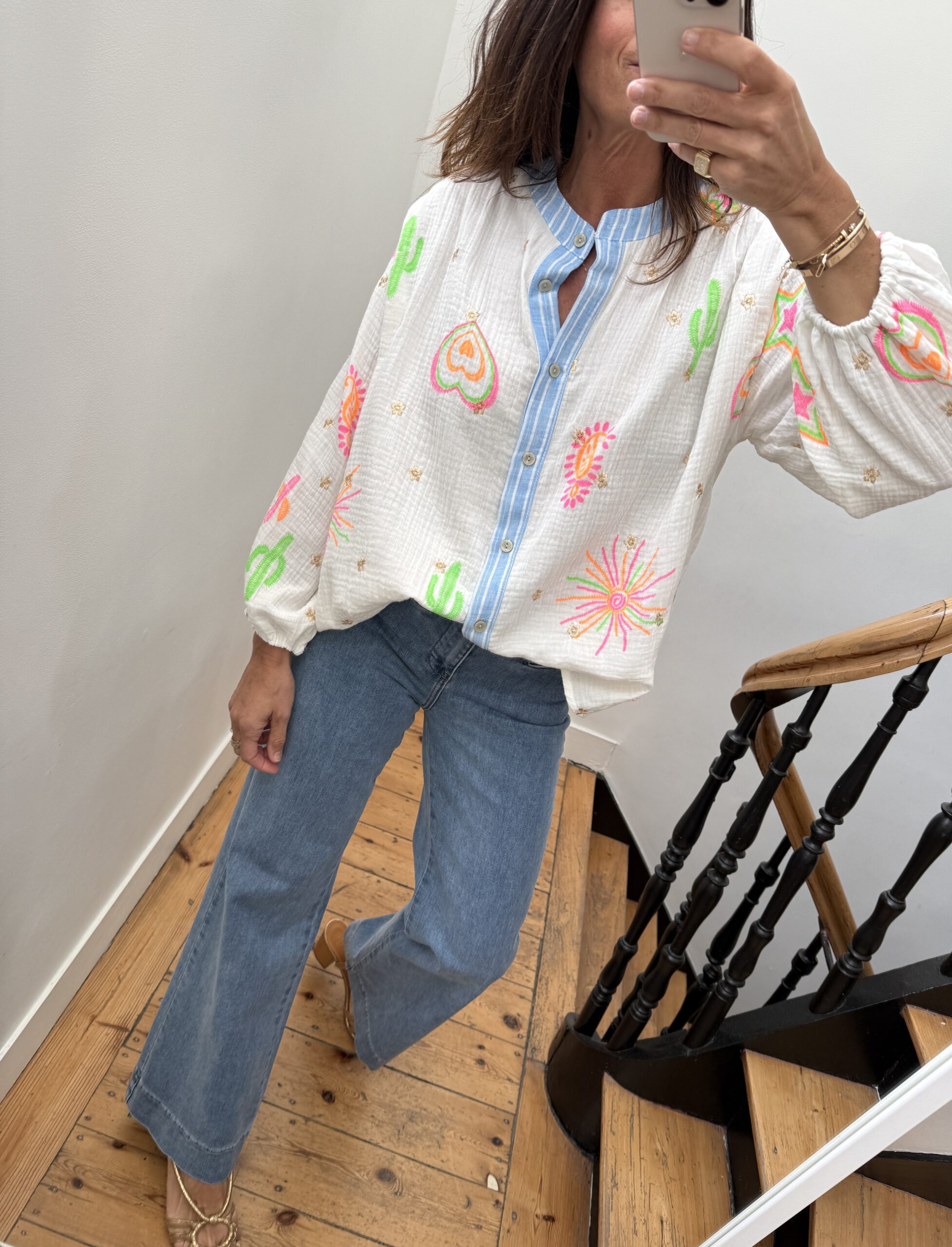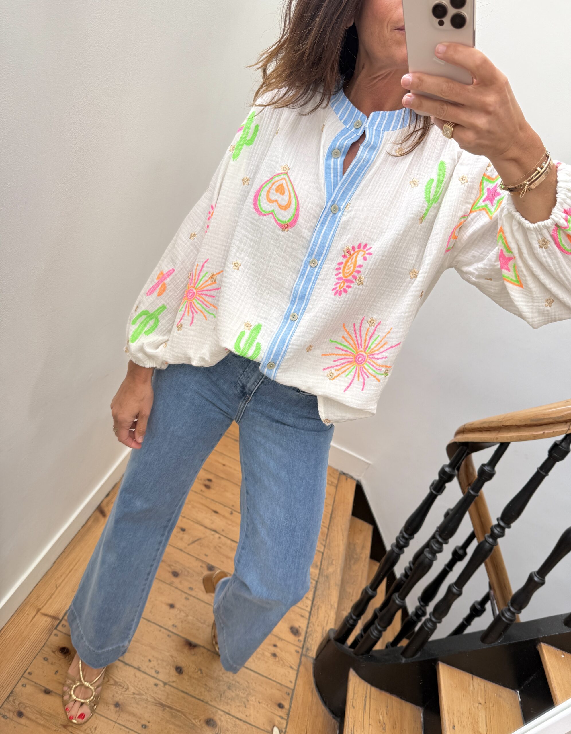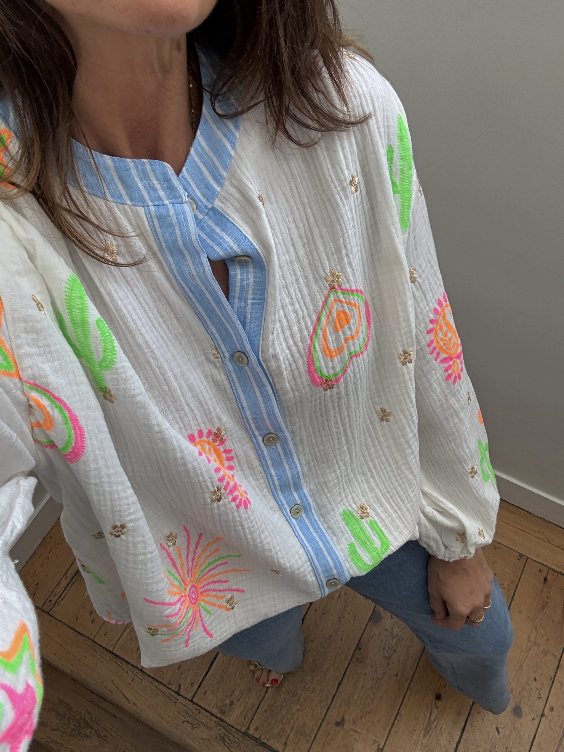 Blouse gaze de coton manches longue brodée