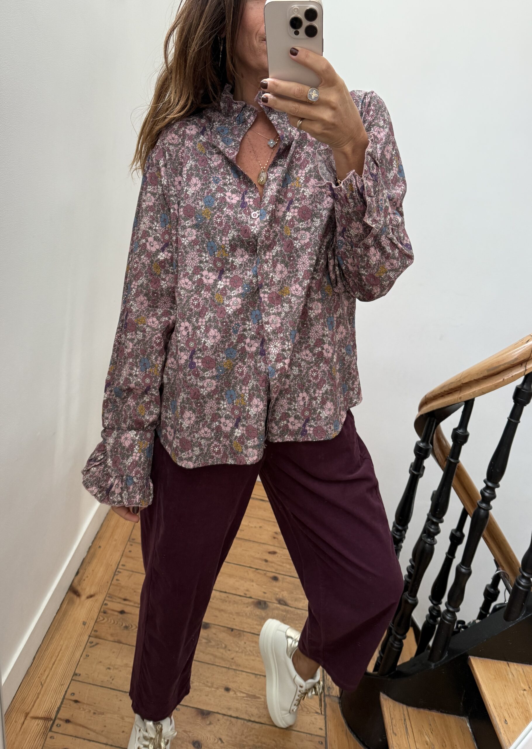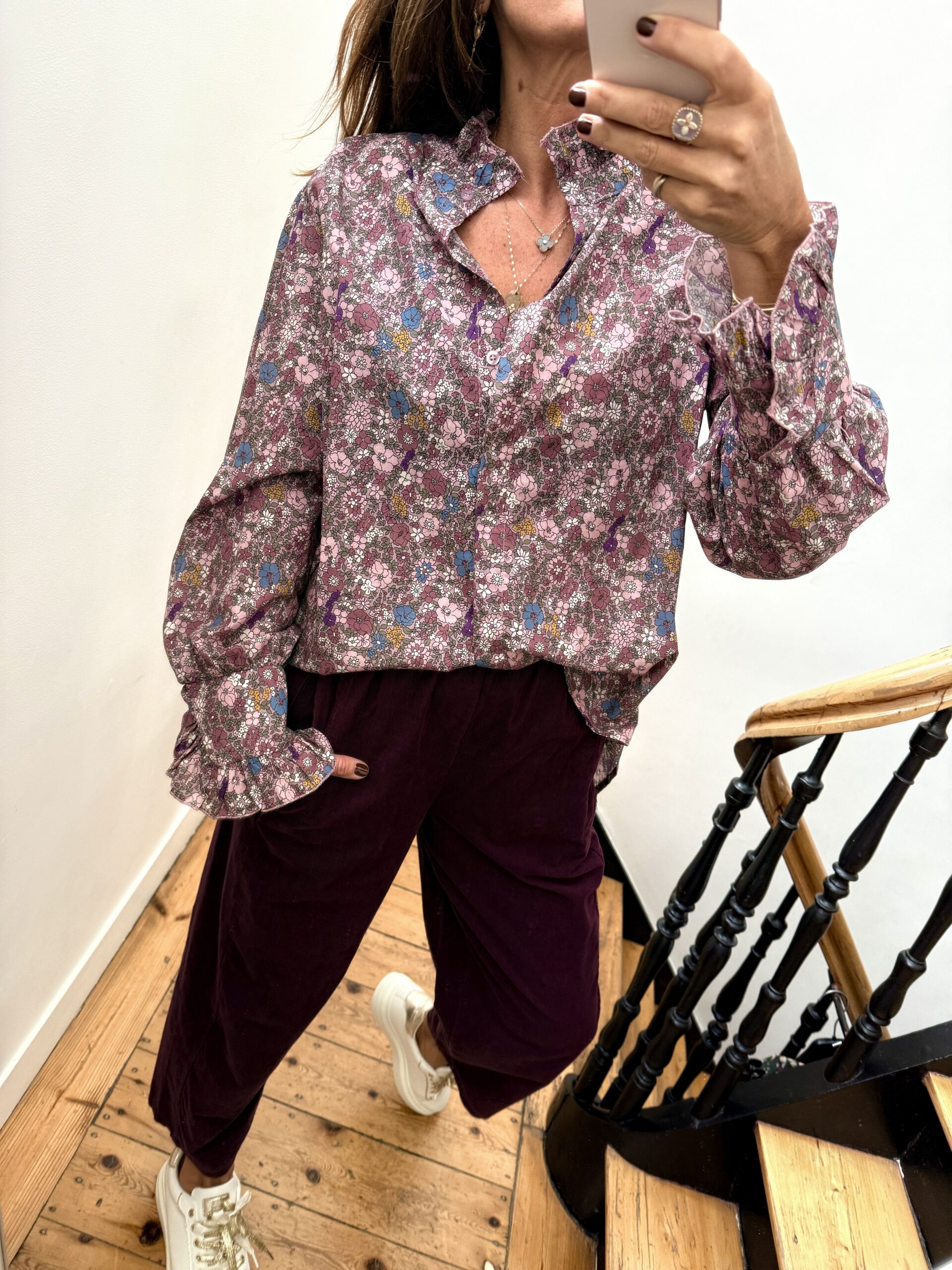 Chemise Johanna oversize voile coton liberty raisin et rose