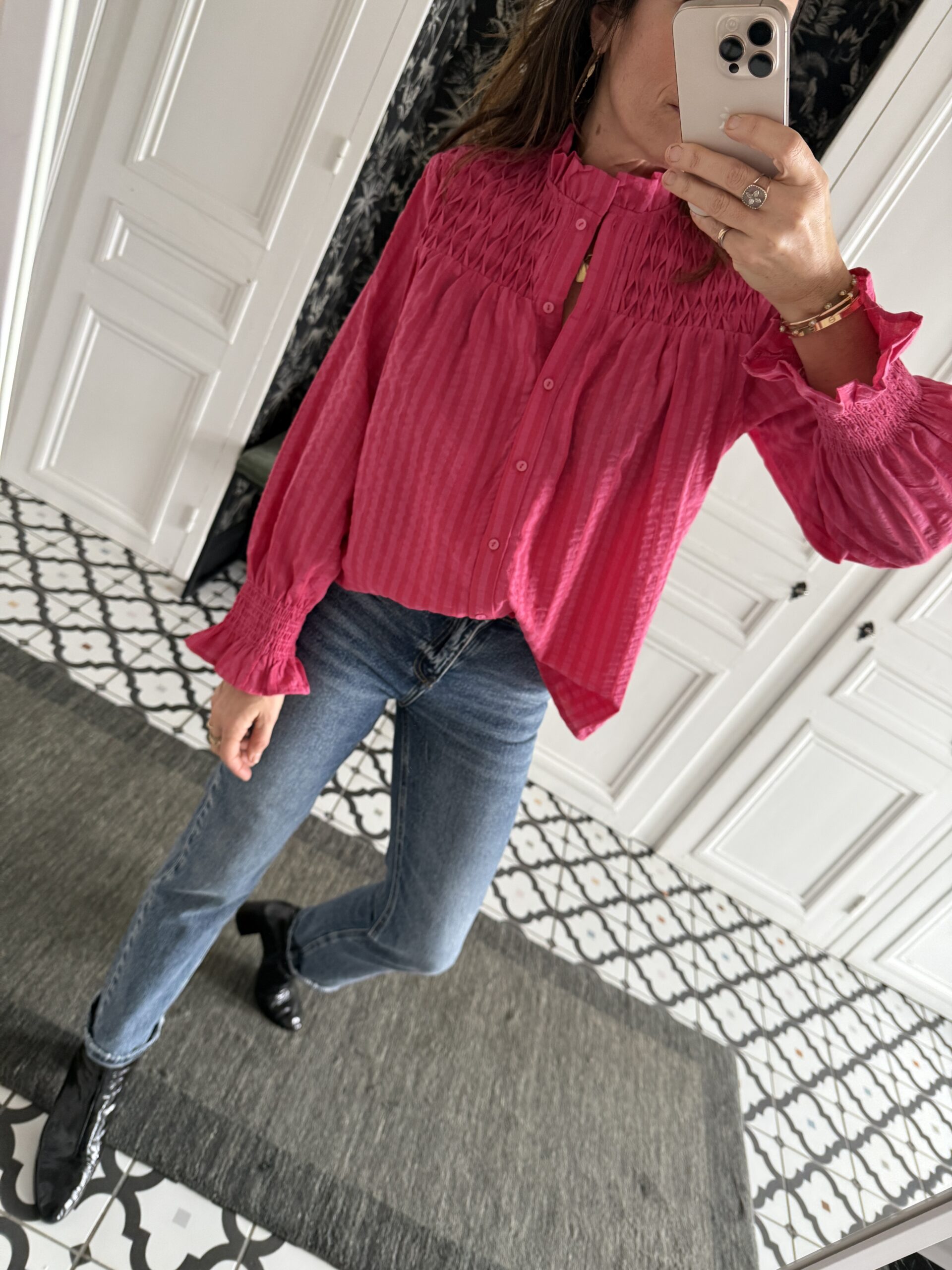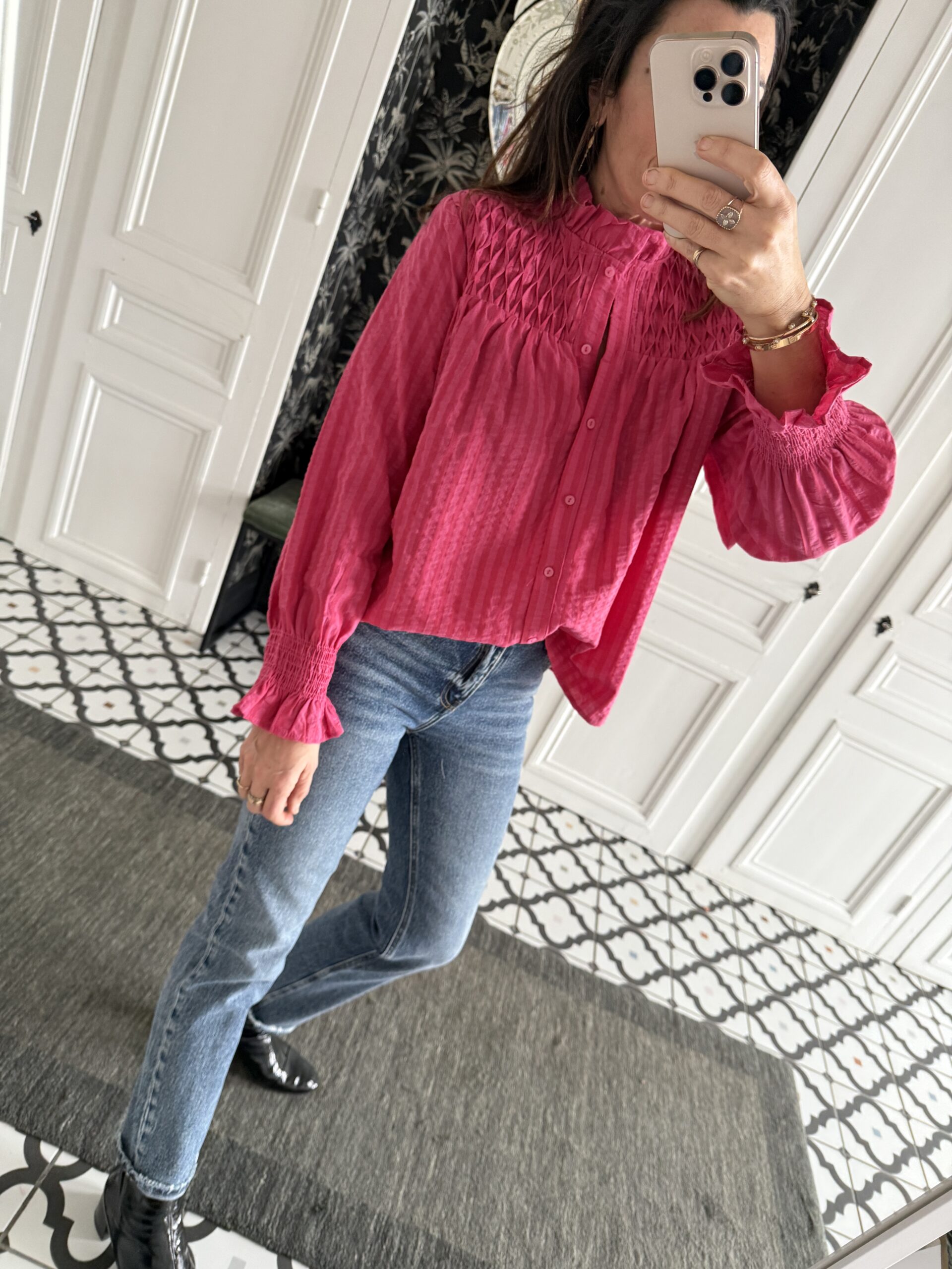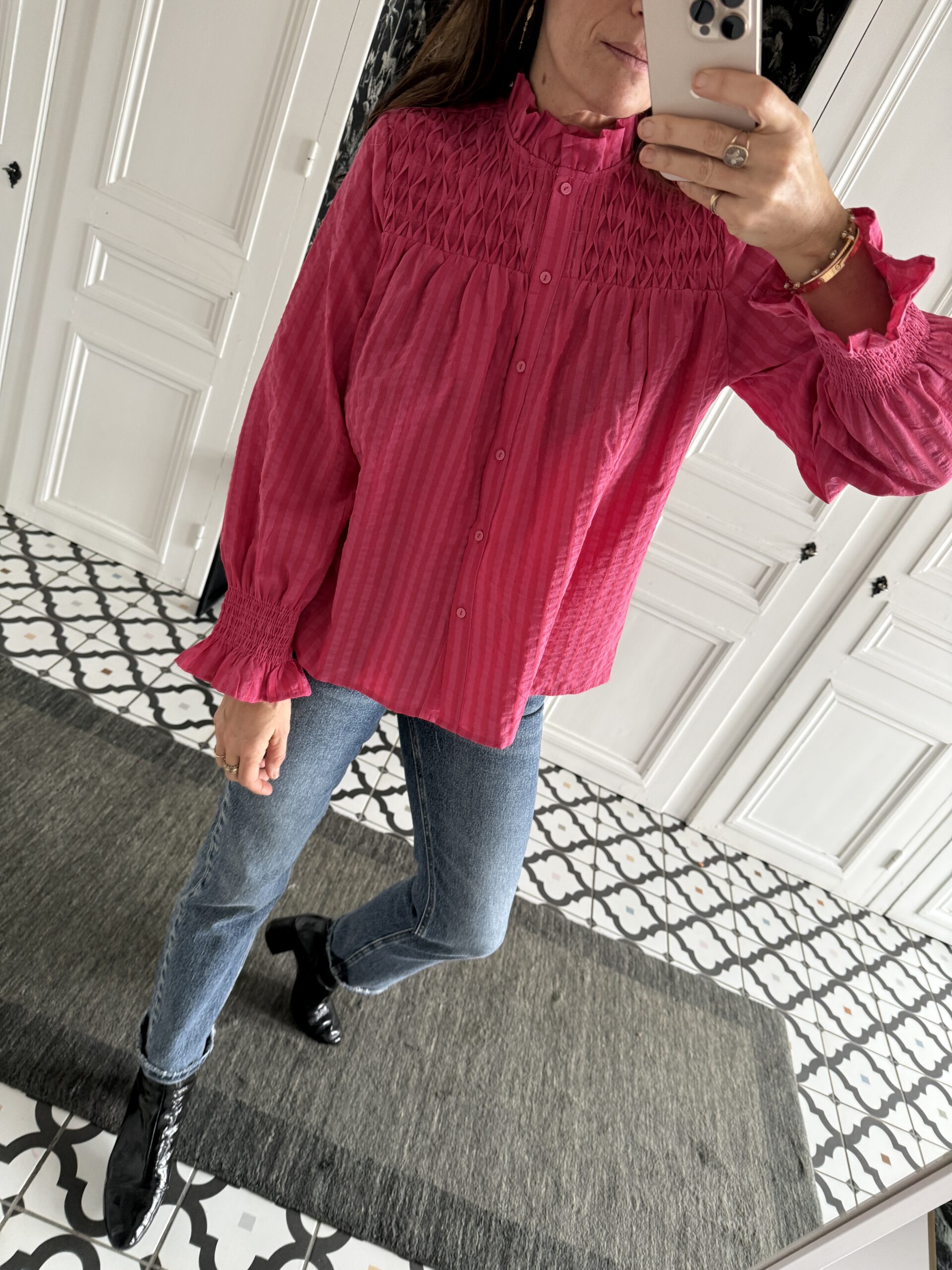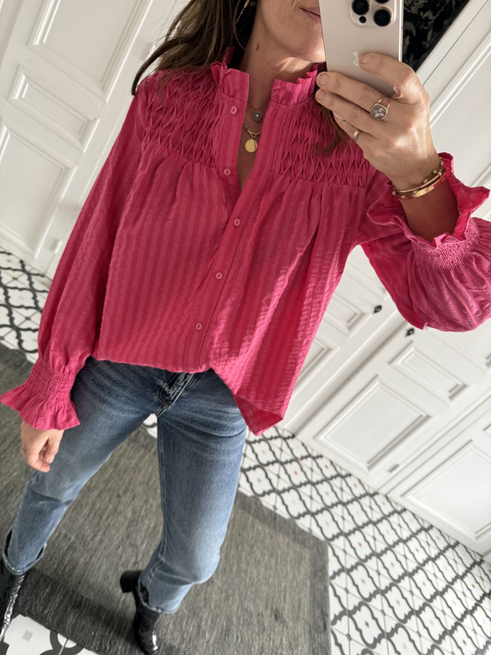 Chemise rayée rose smocks