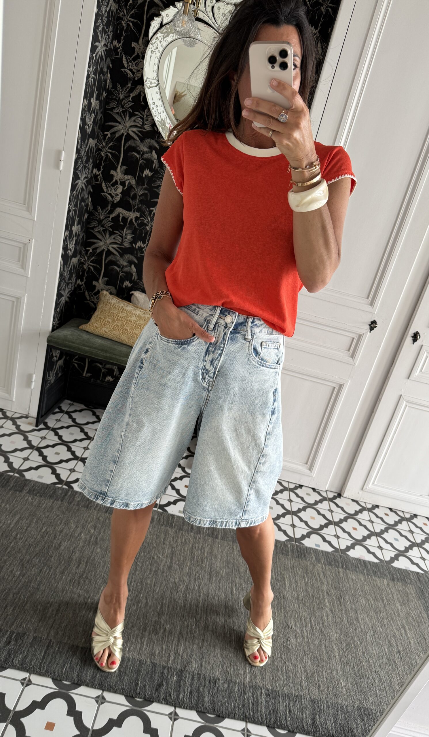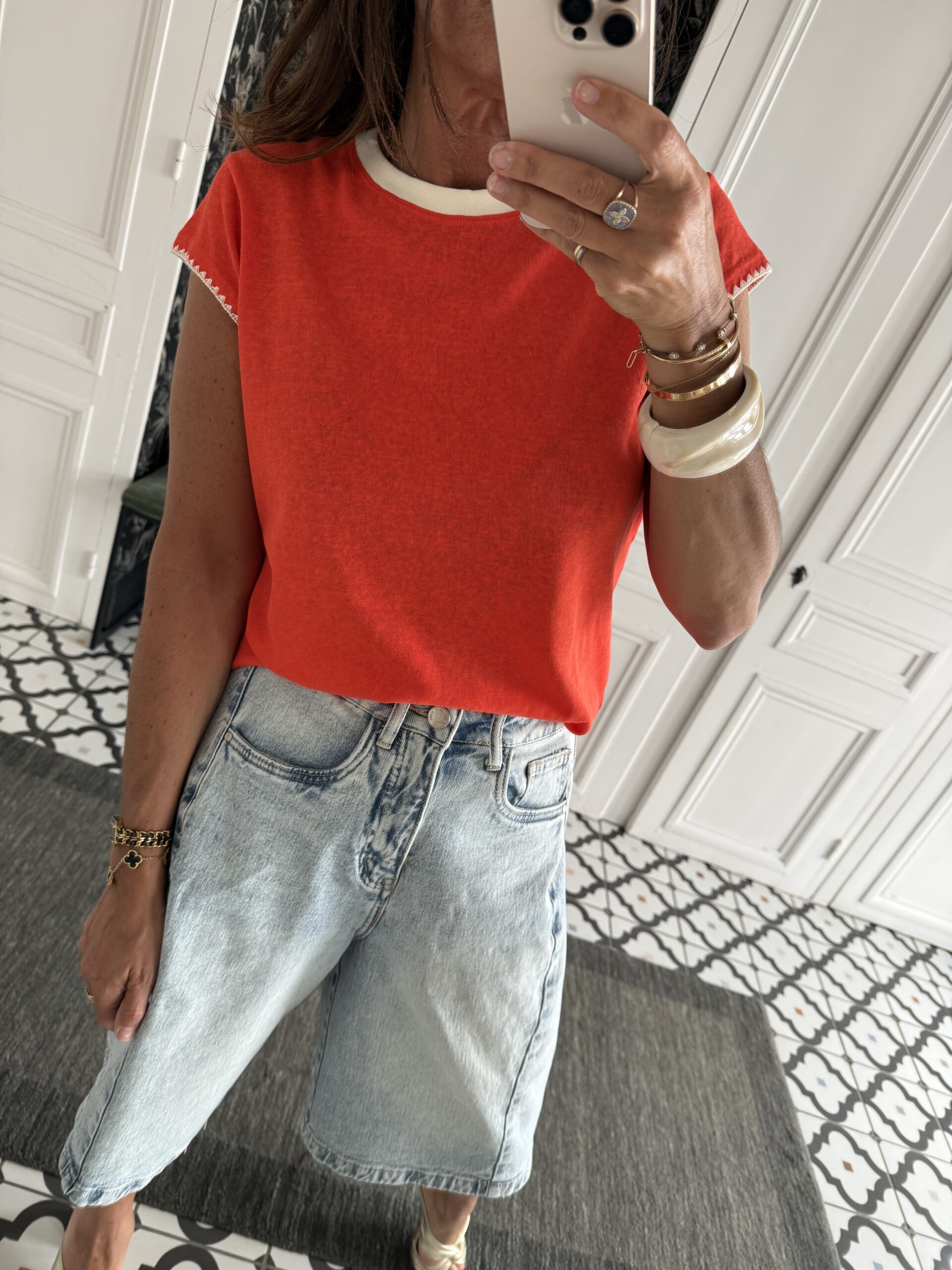 Tee Shirt écru orange bords écru