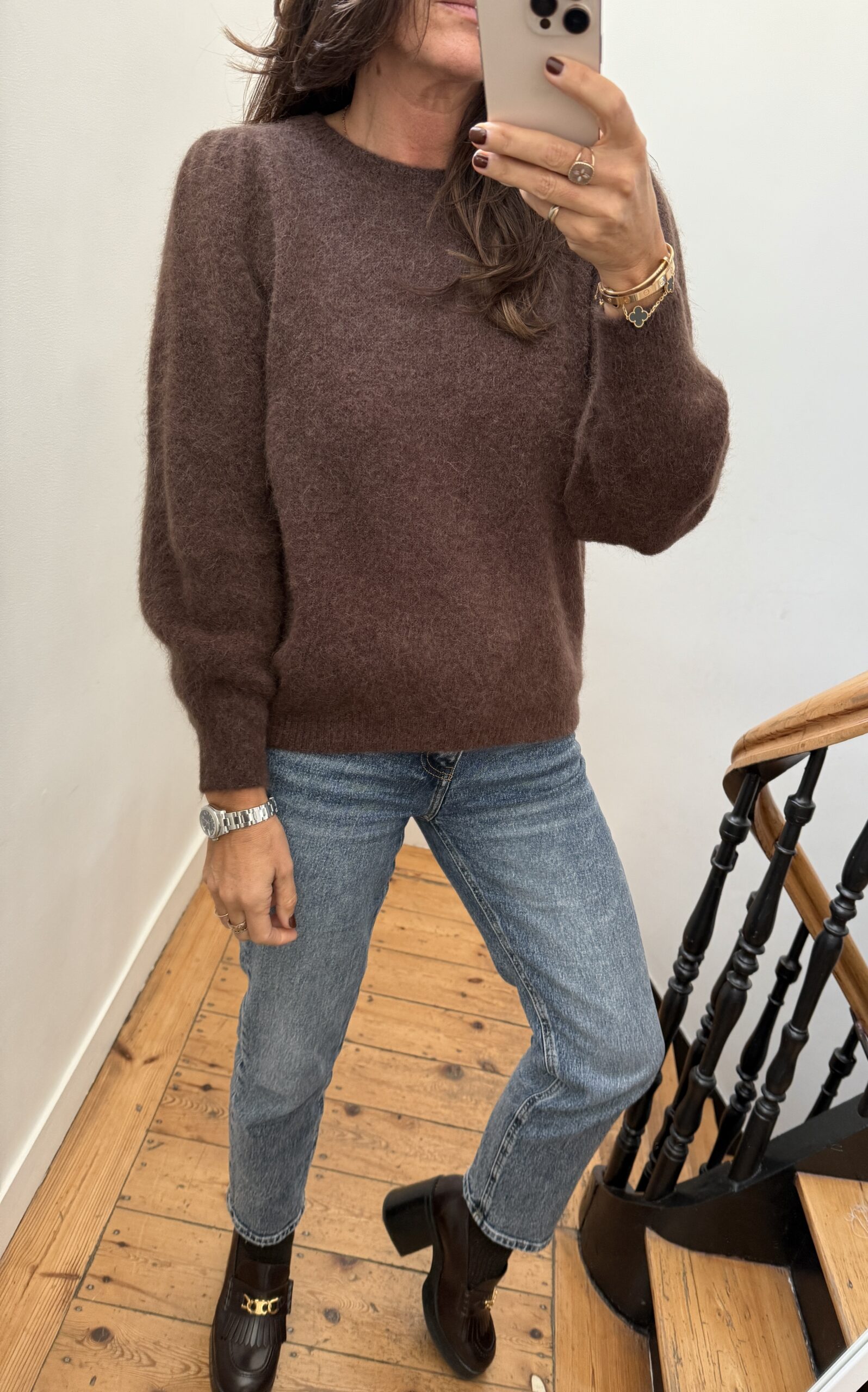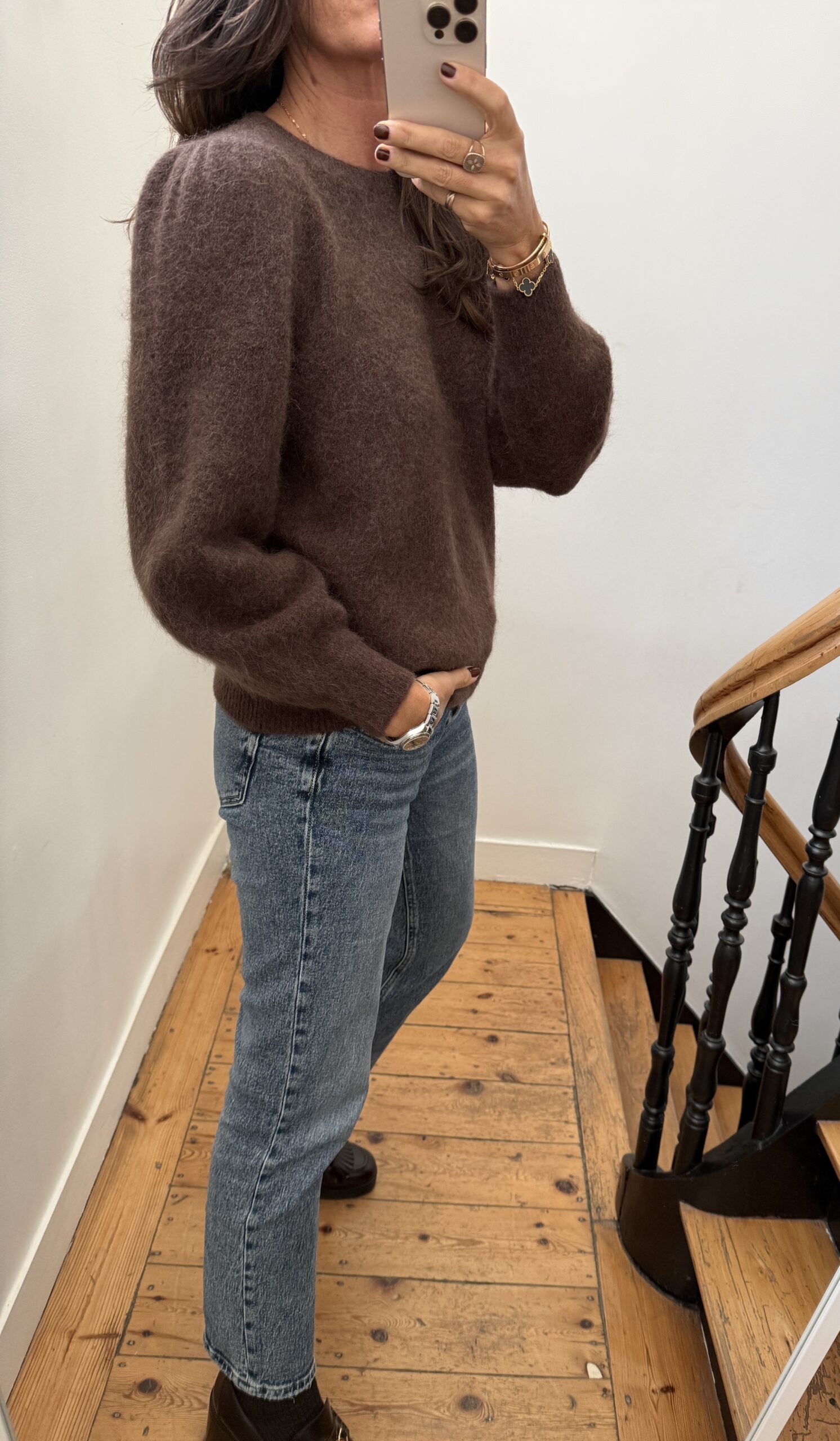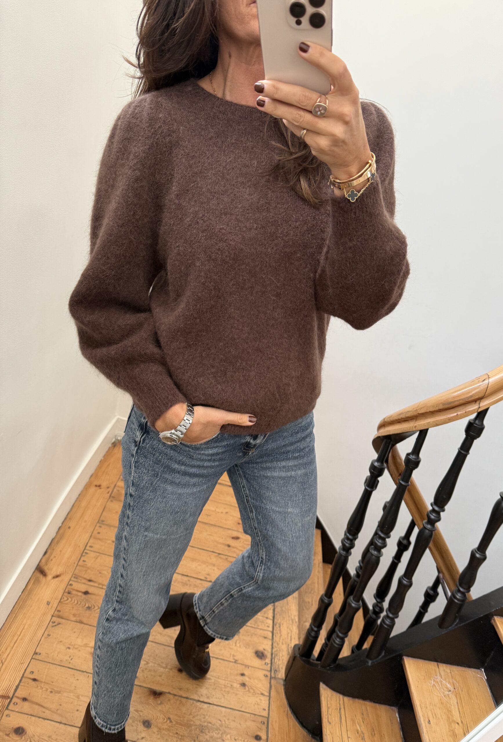 Pull Margot alpaga épaules froncées chocolat