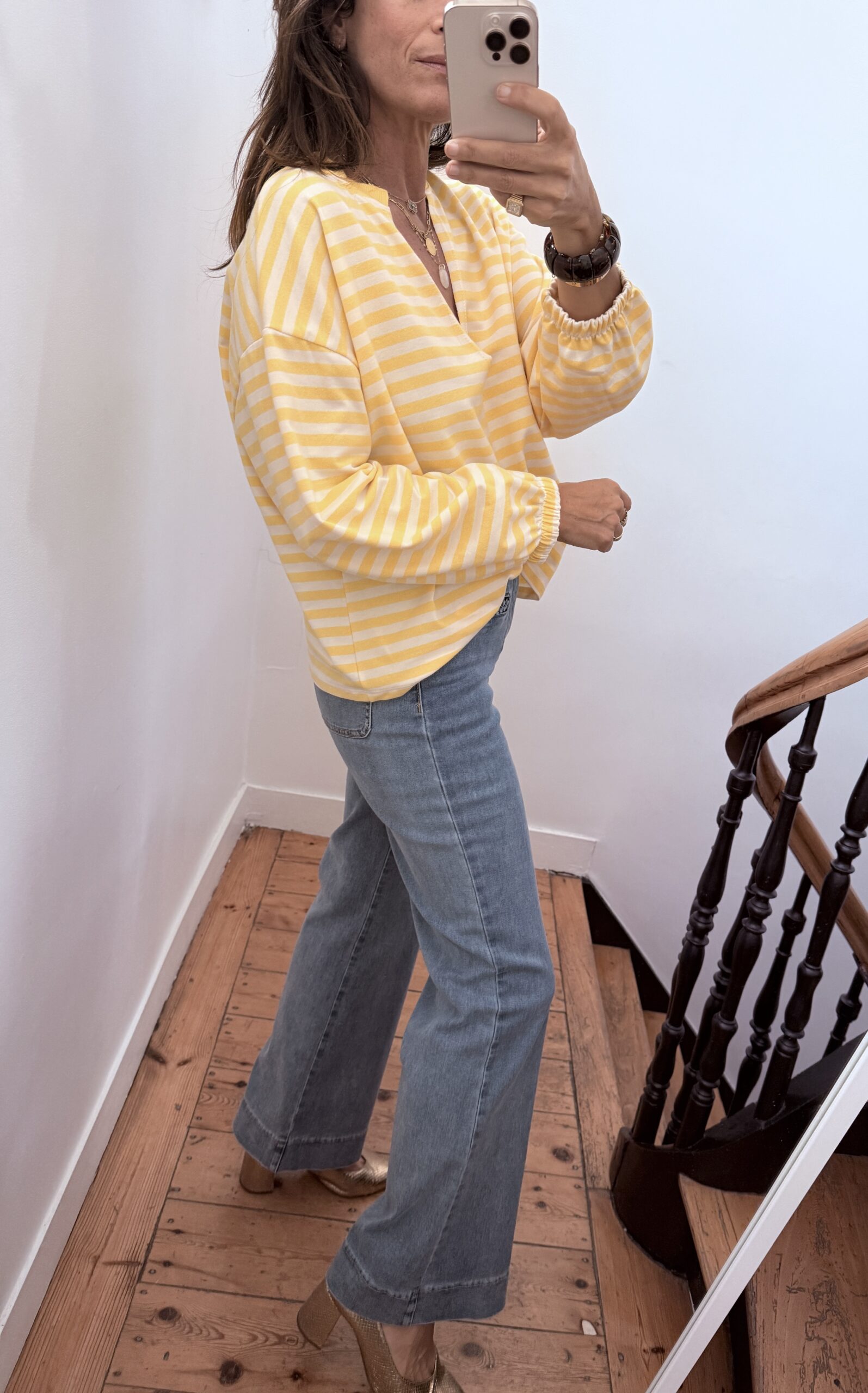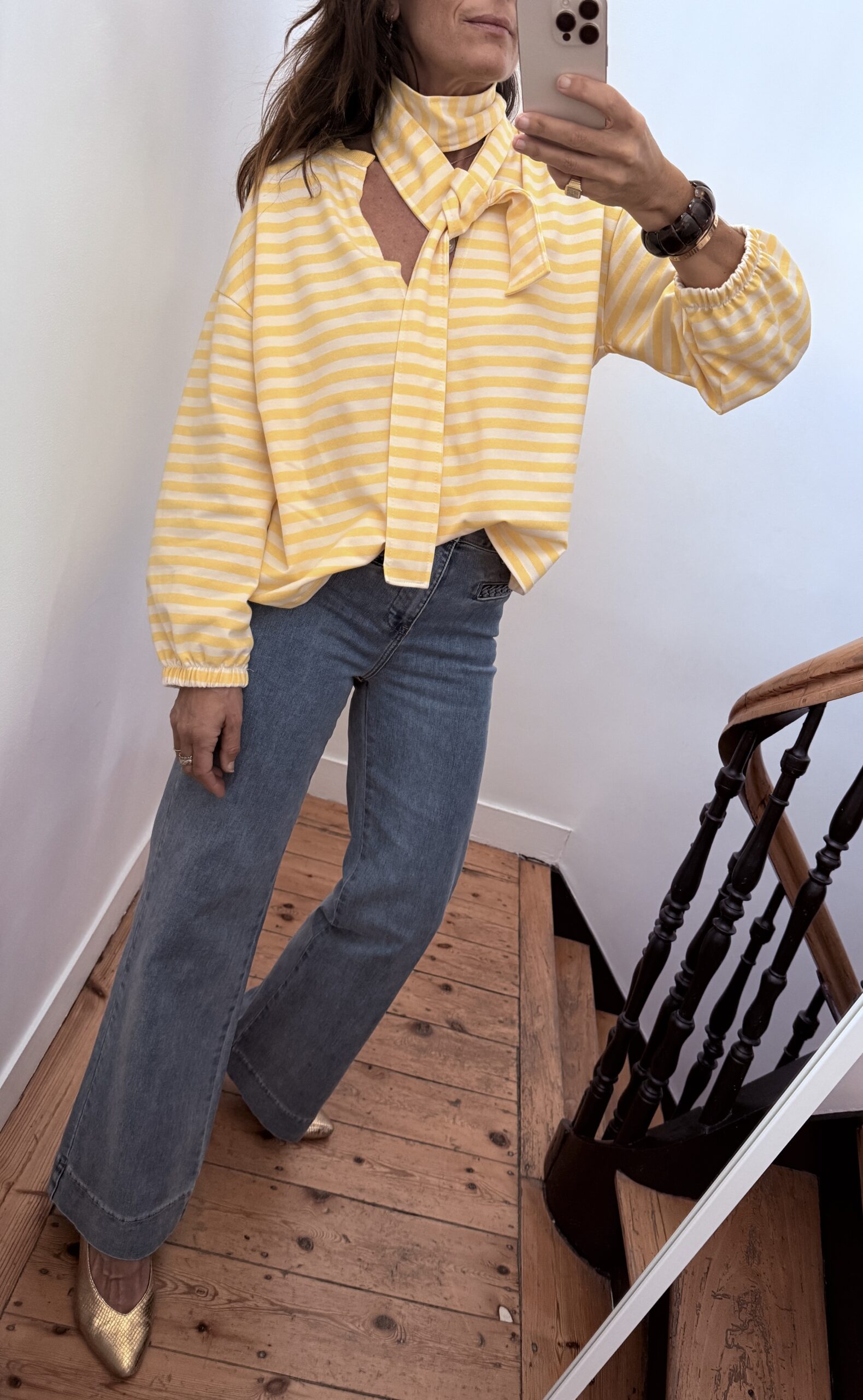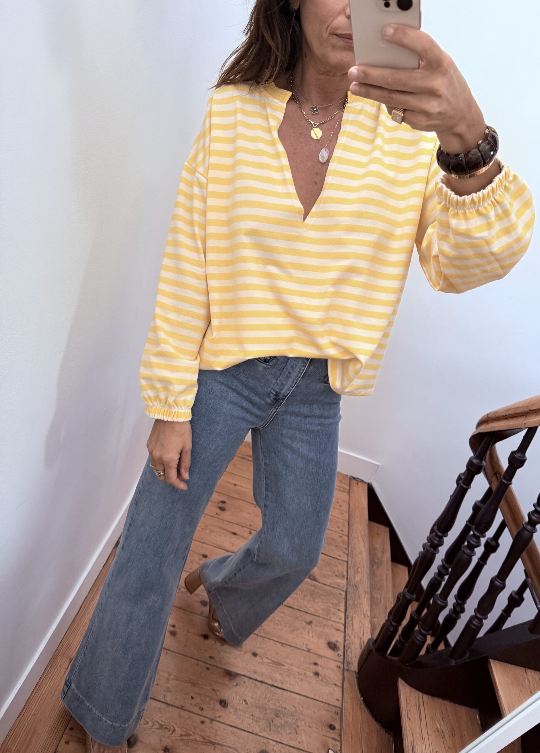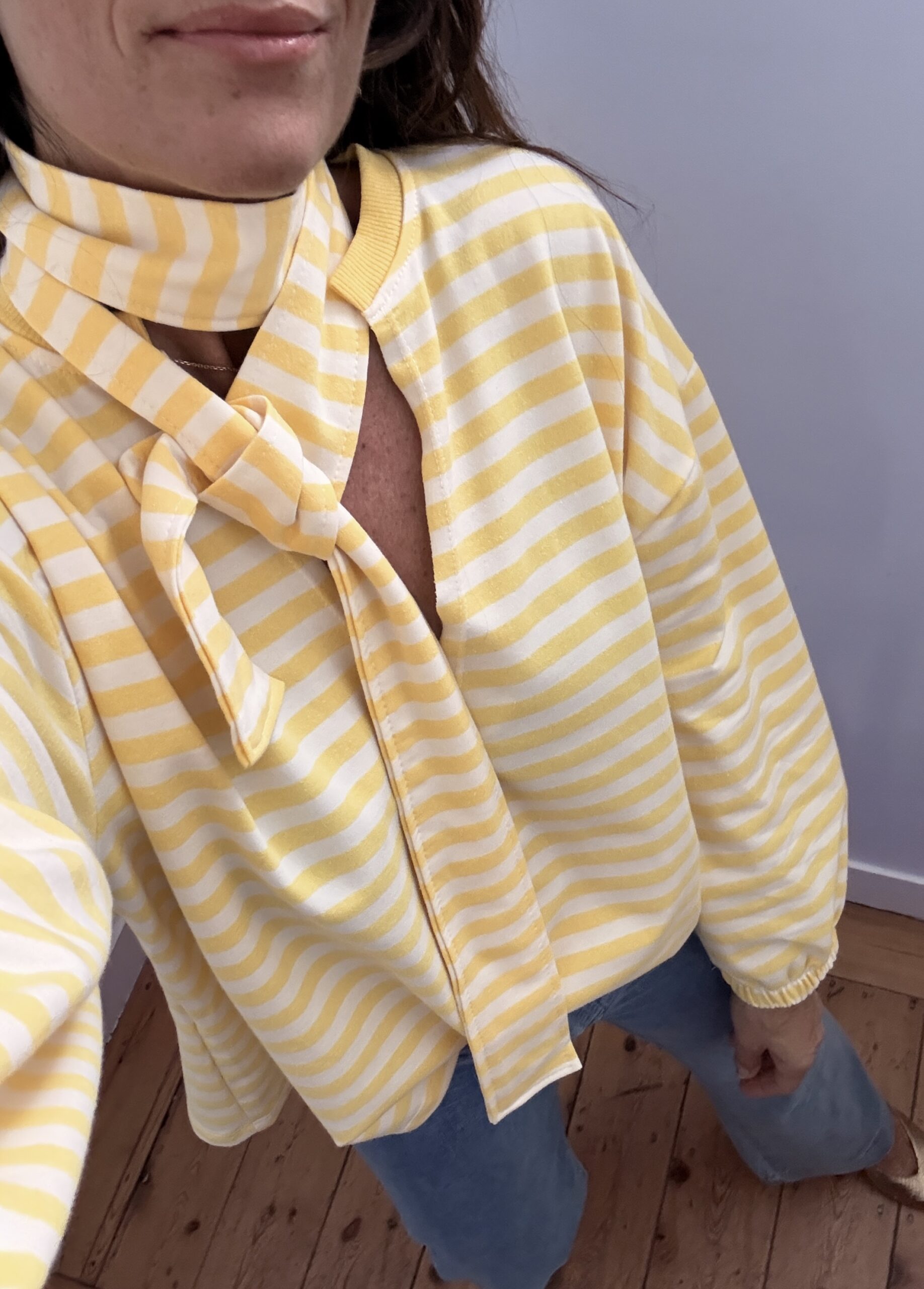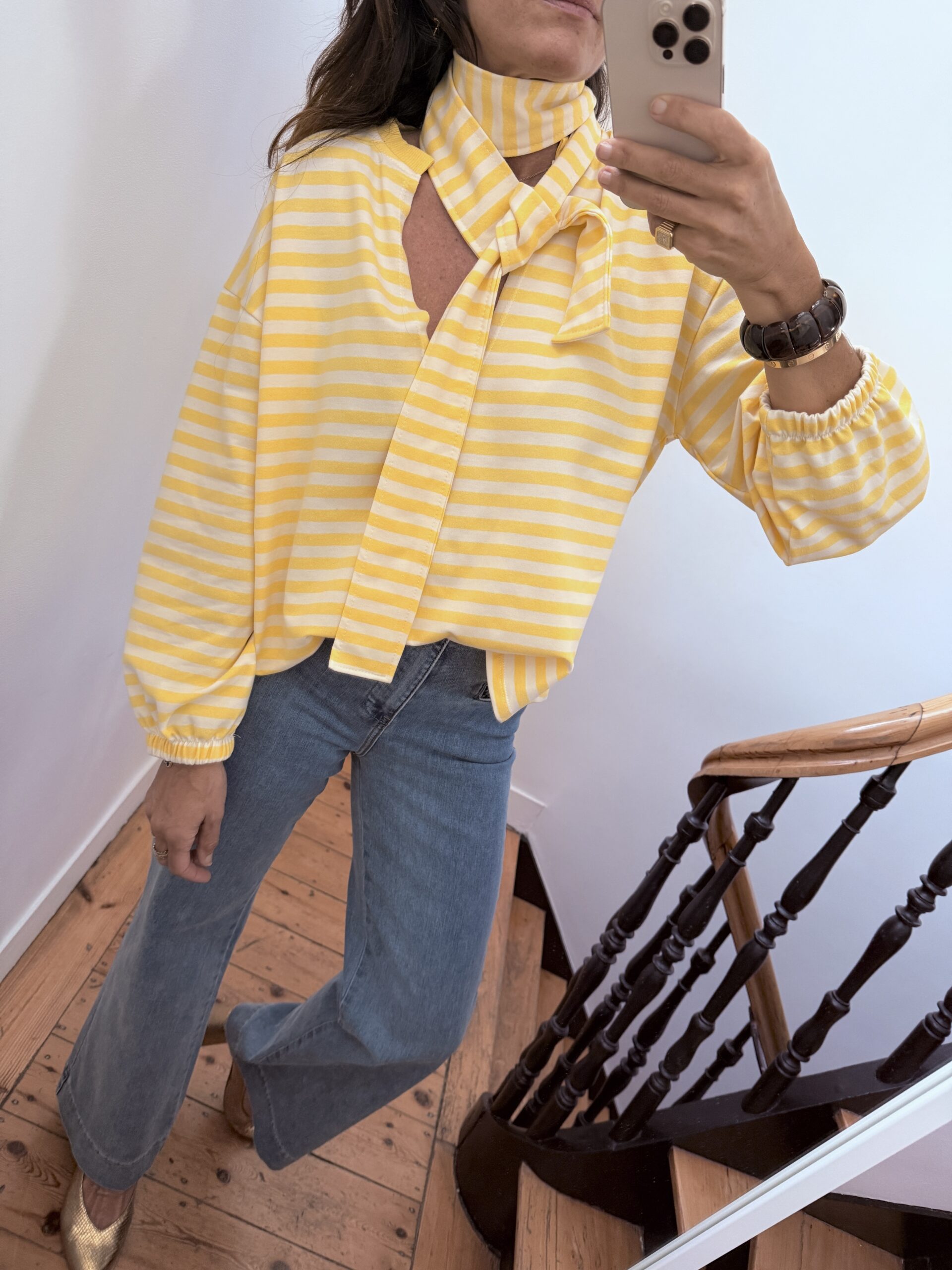 Sweat shirt fin rayé jaune