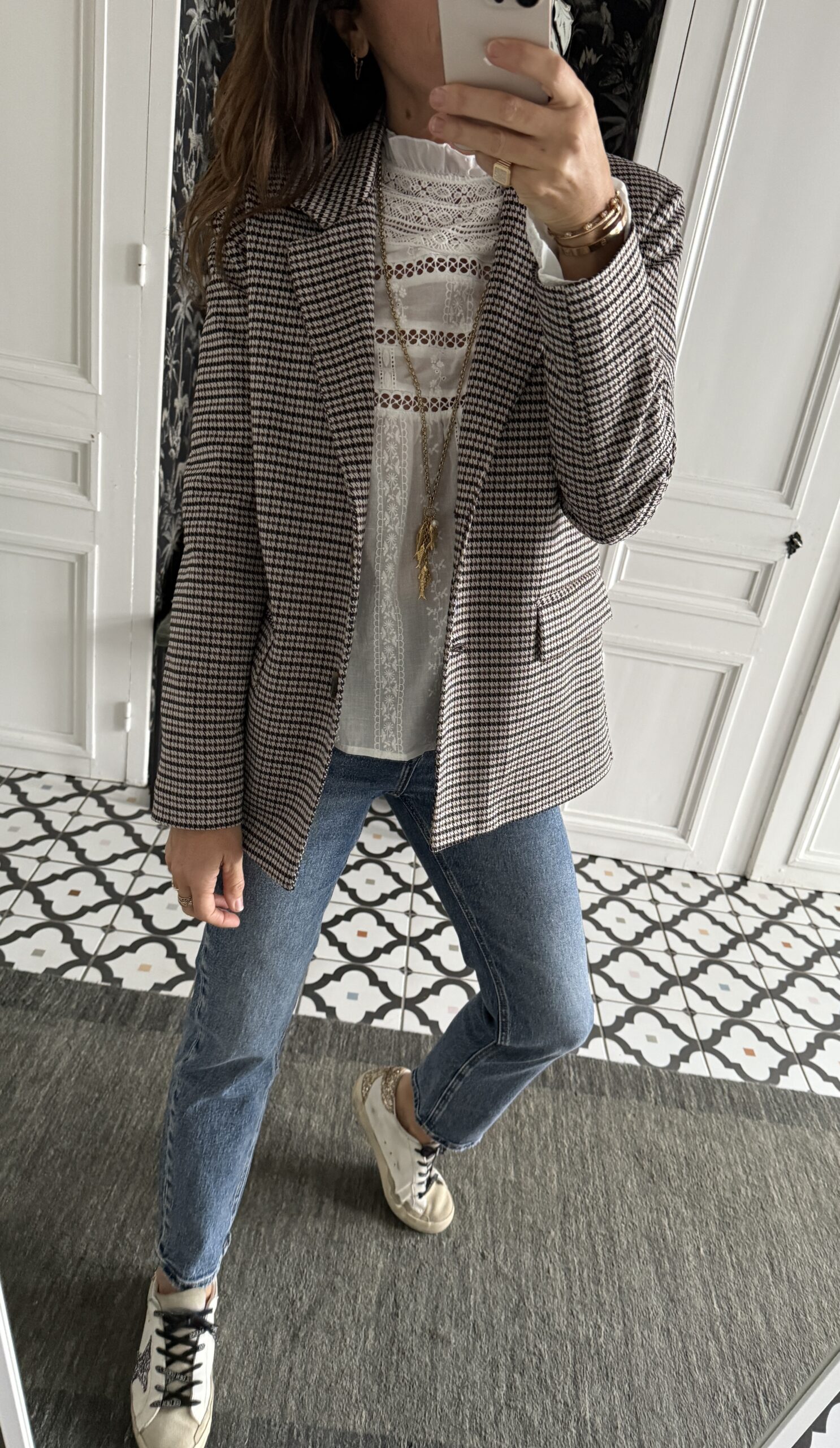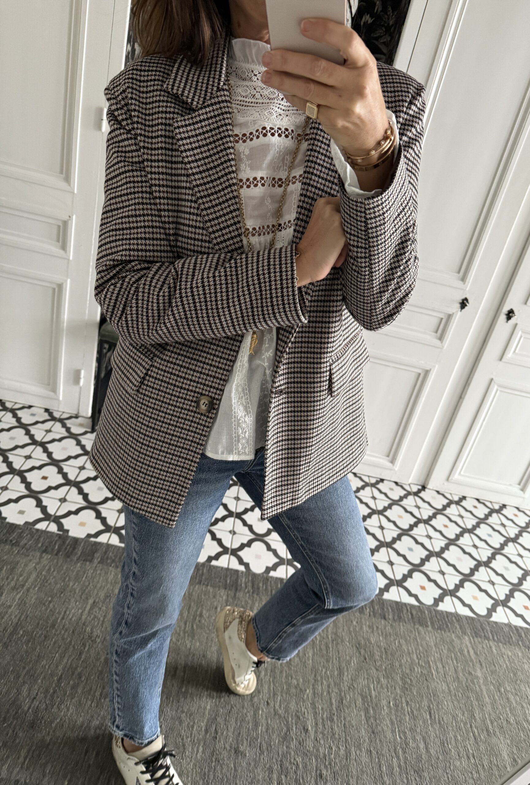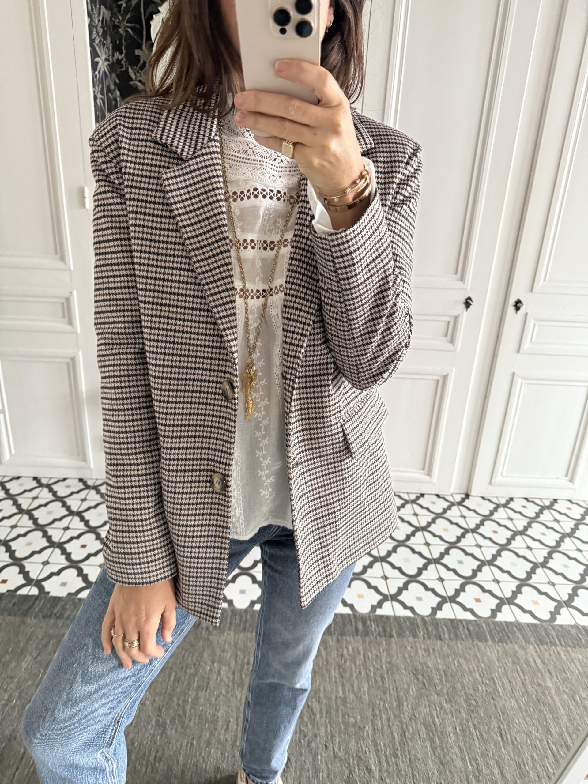 Veste Bossy prince de galles noir et marron