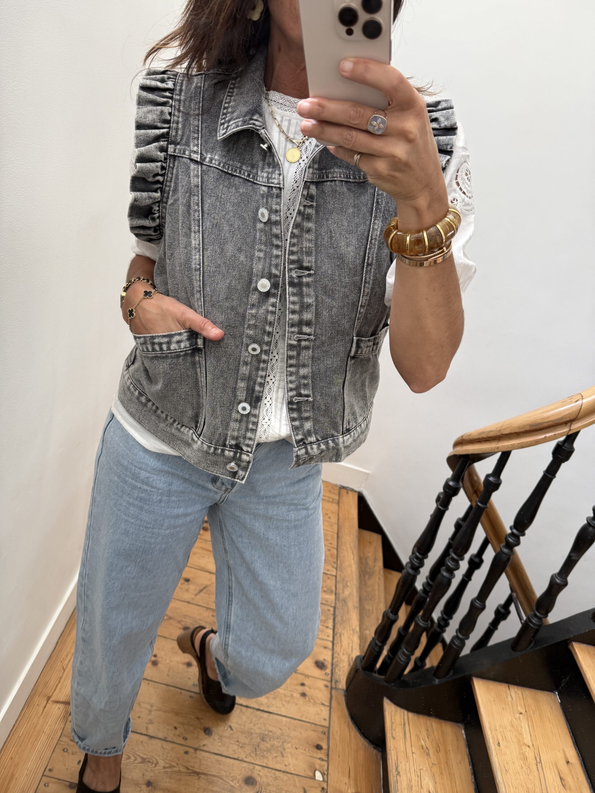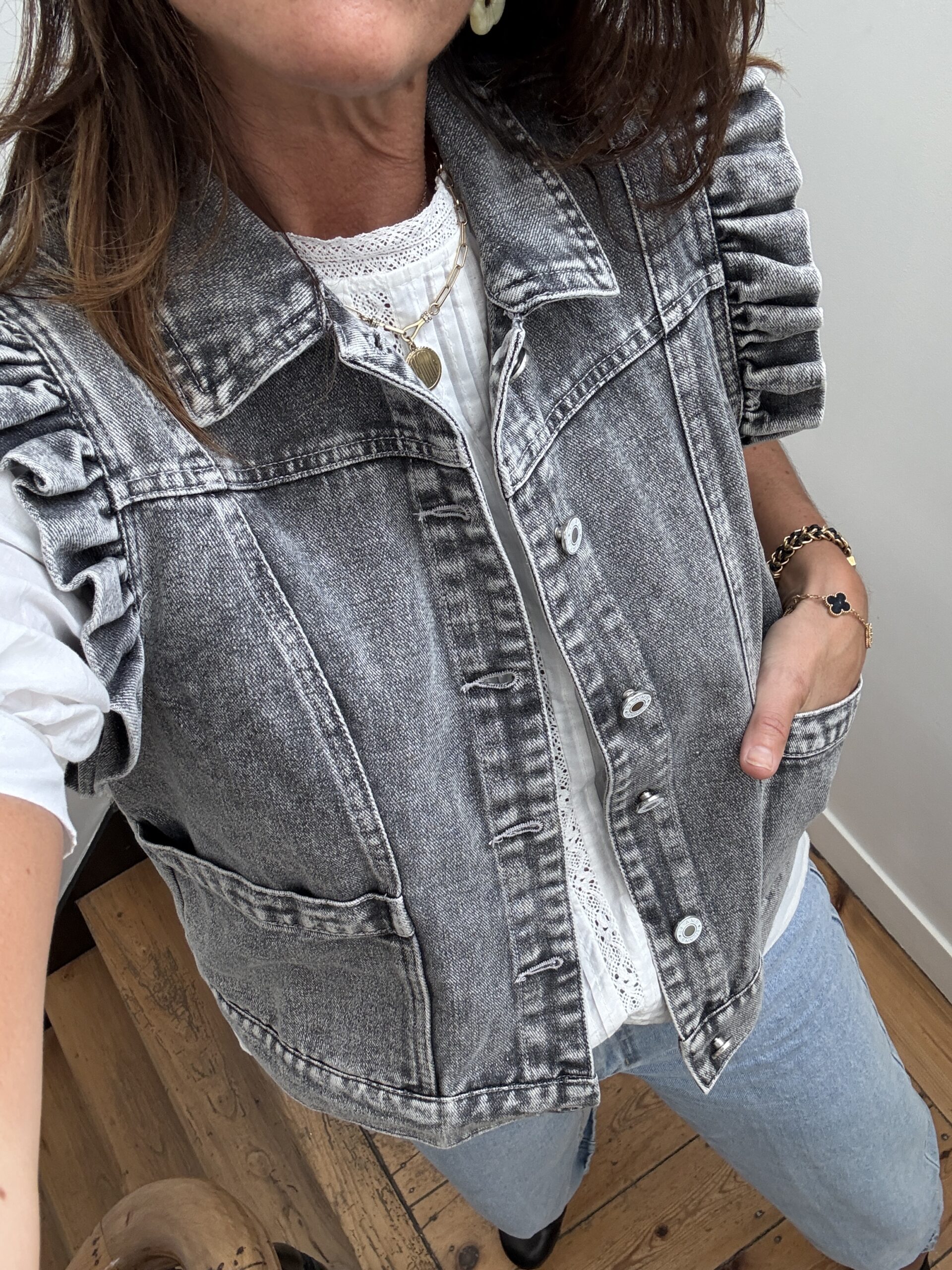 Veste en jeans sans manche gris