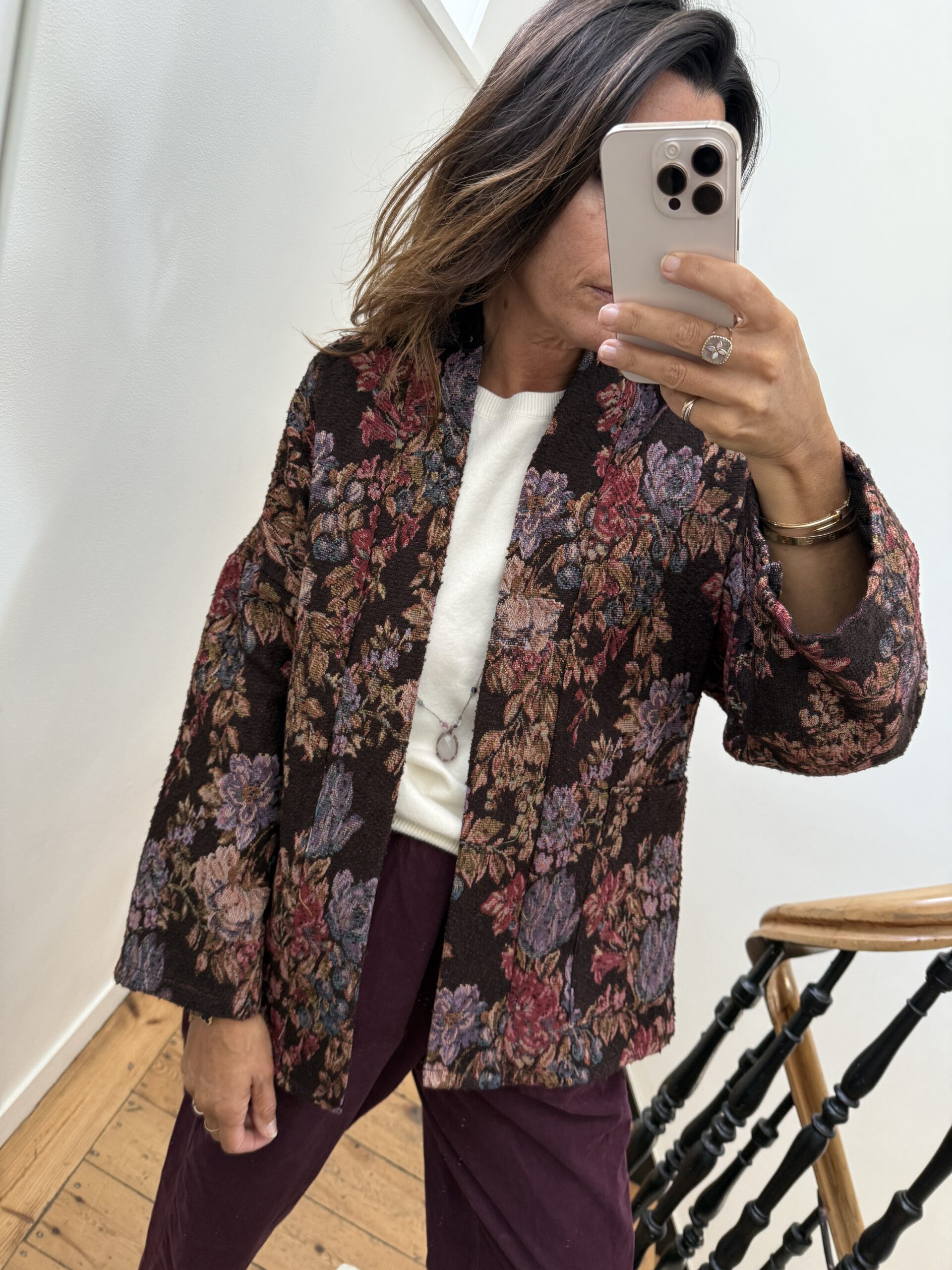Veste Johanna fleurie fond prune marron
